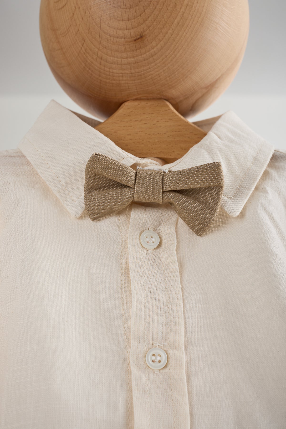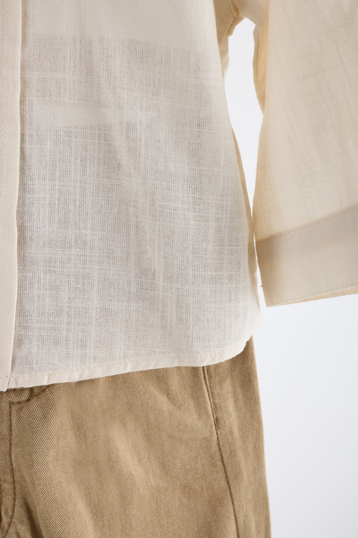 Keten gömlek, önden düğmeli, uzun kollu.