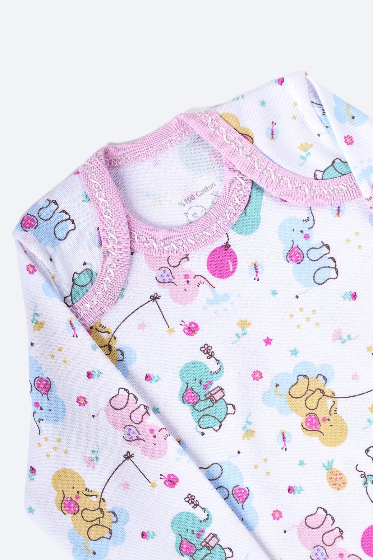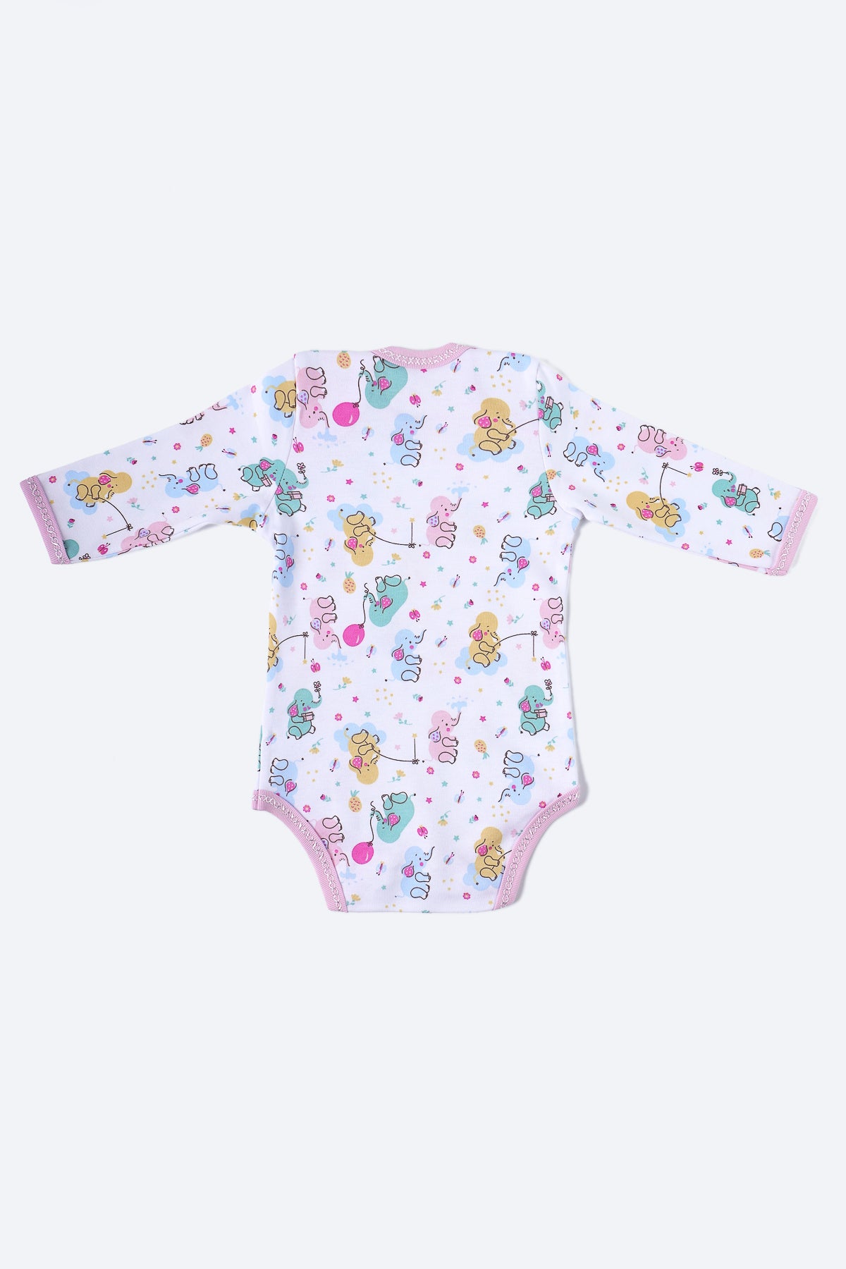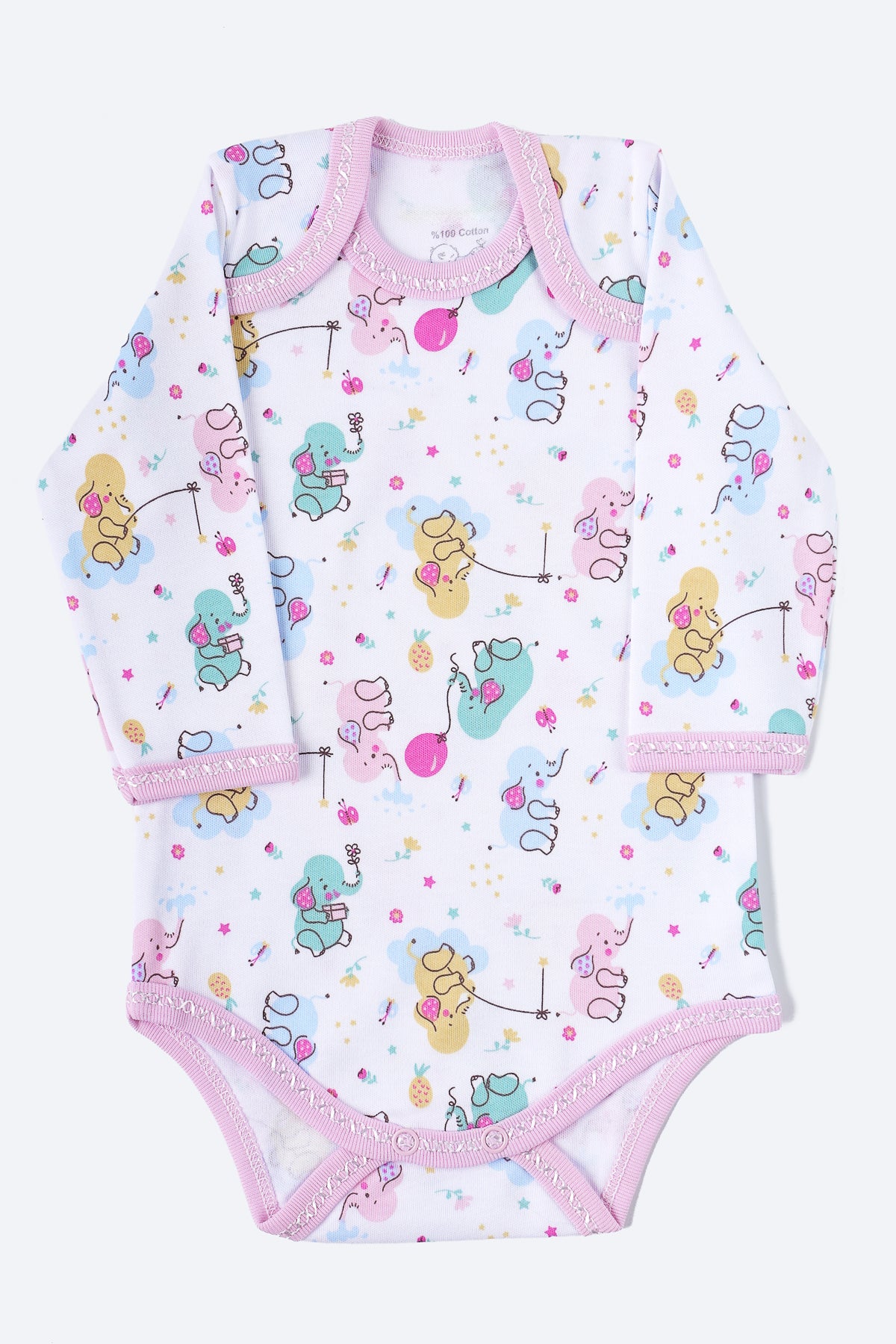 Pembe fil desenli, uzun kollu body.