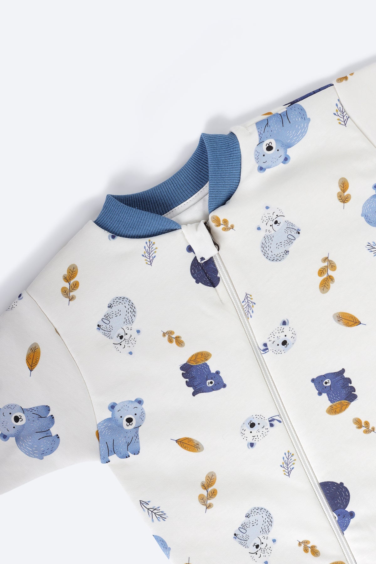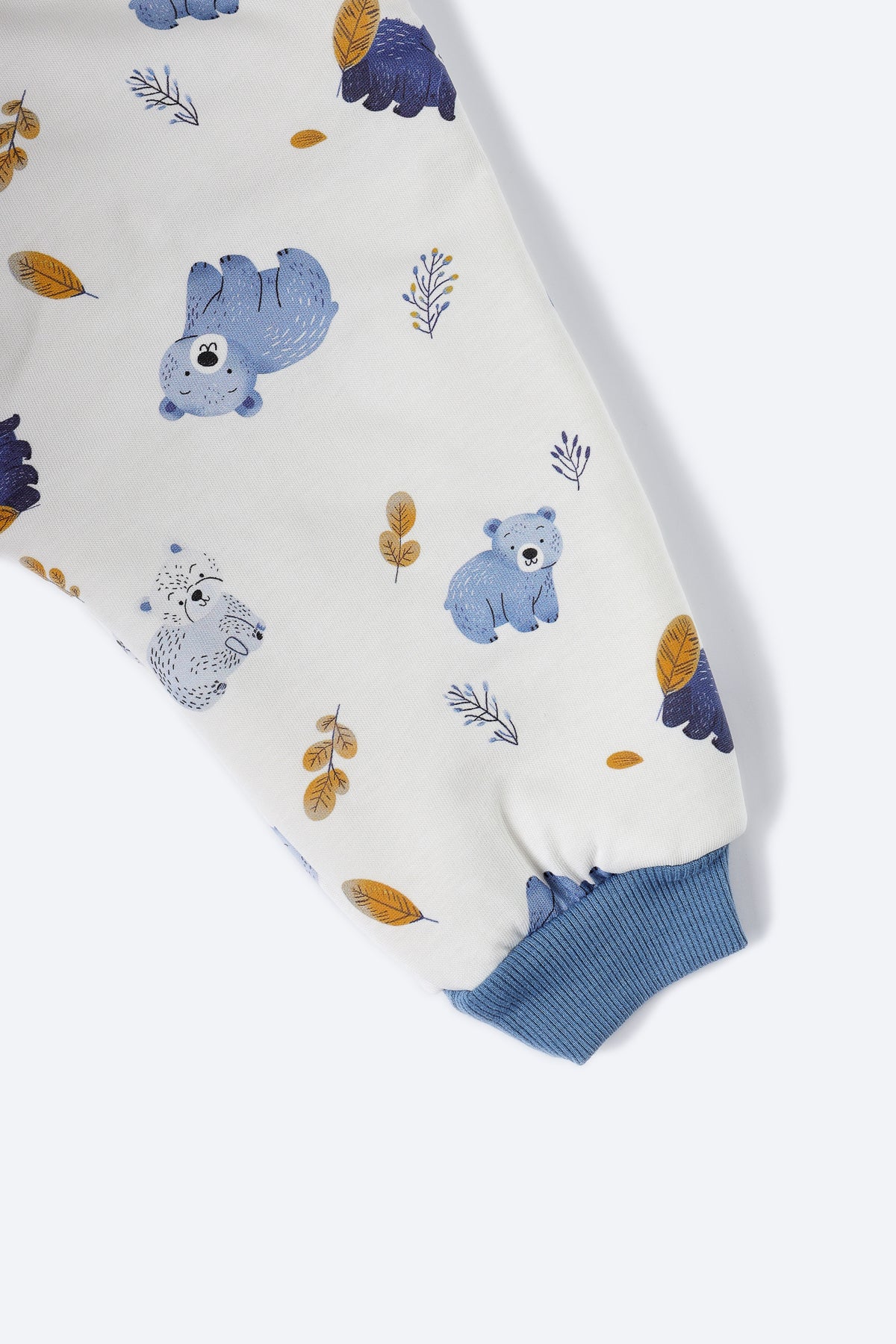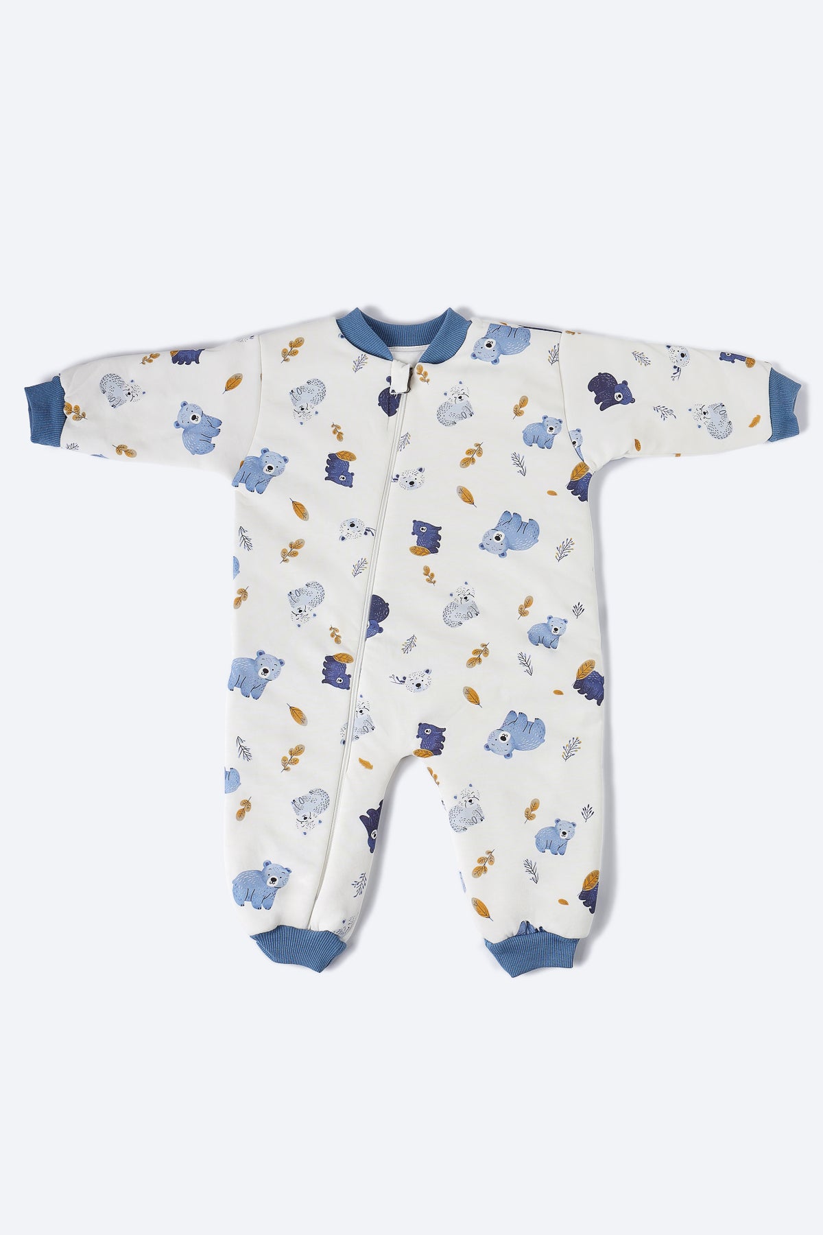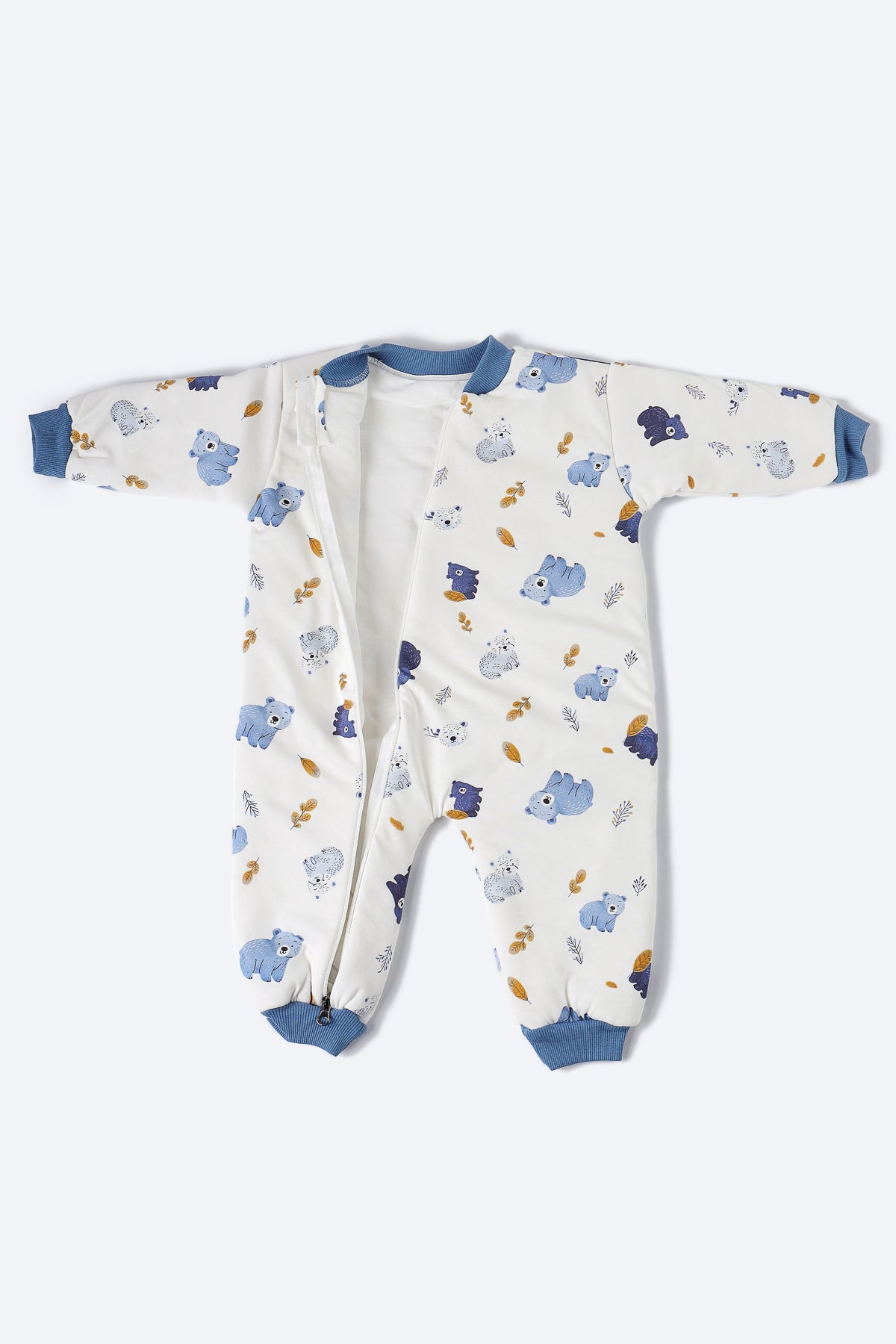 Mavi ayıcık desenli uyku tulumu.