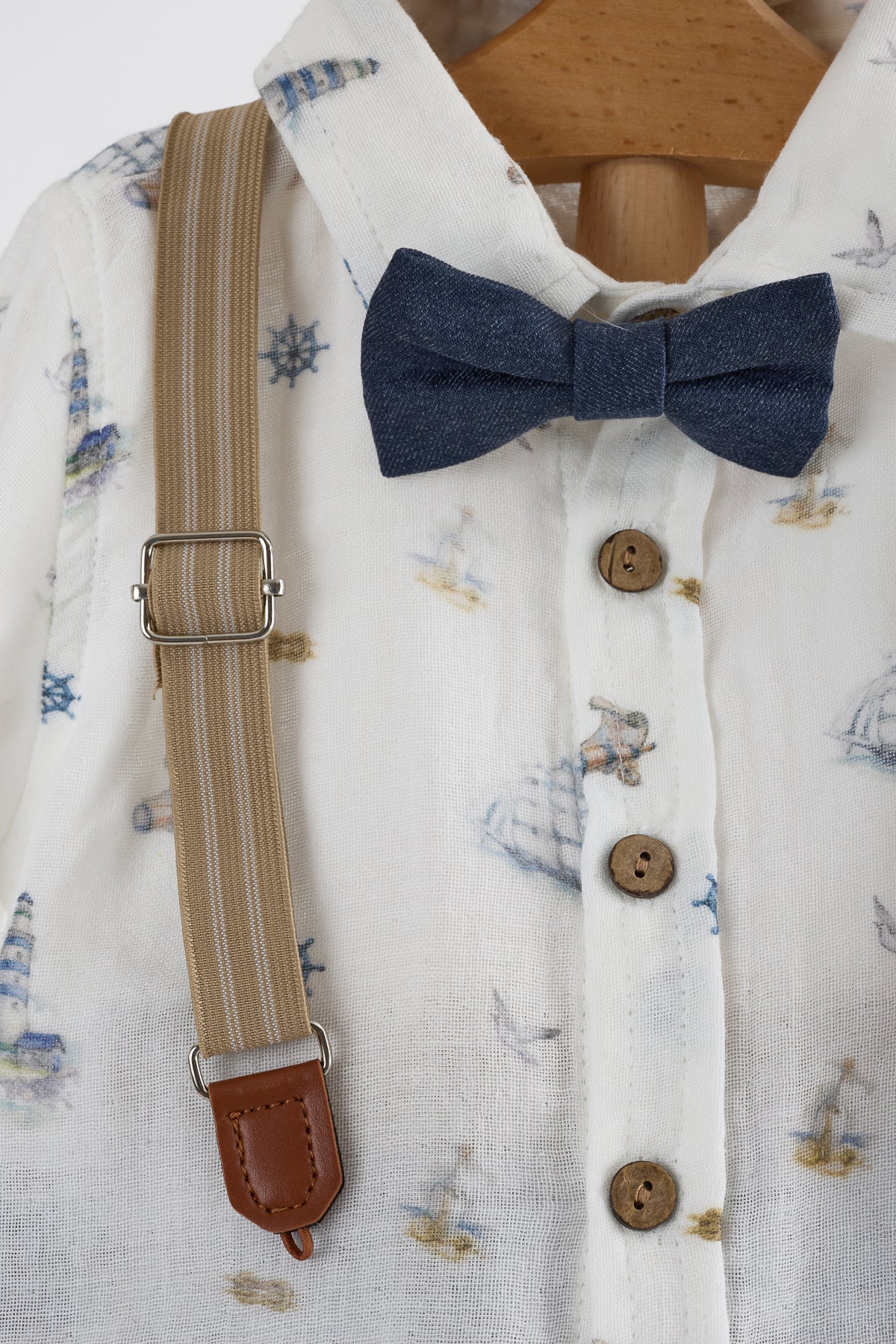 Mavi Yelkenli Desenli 4'lü Salopet Takım