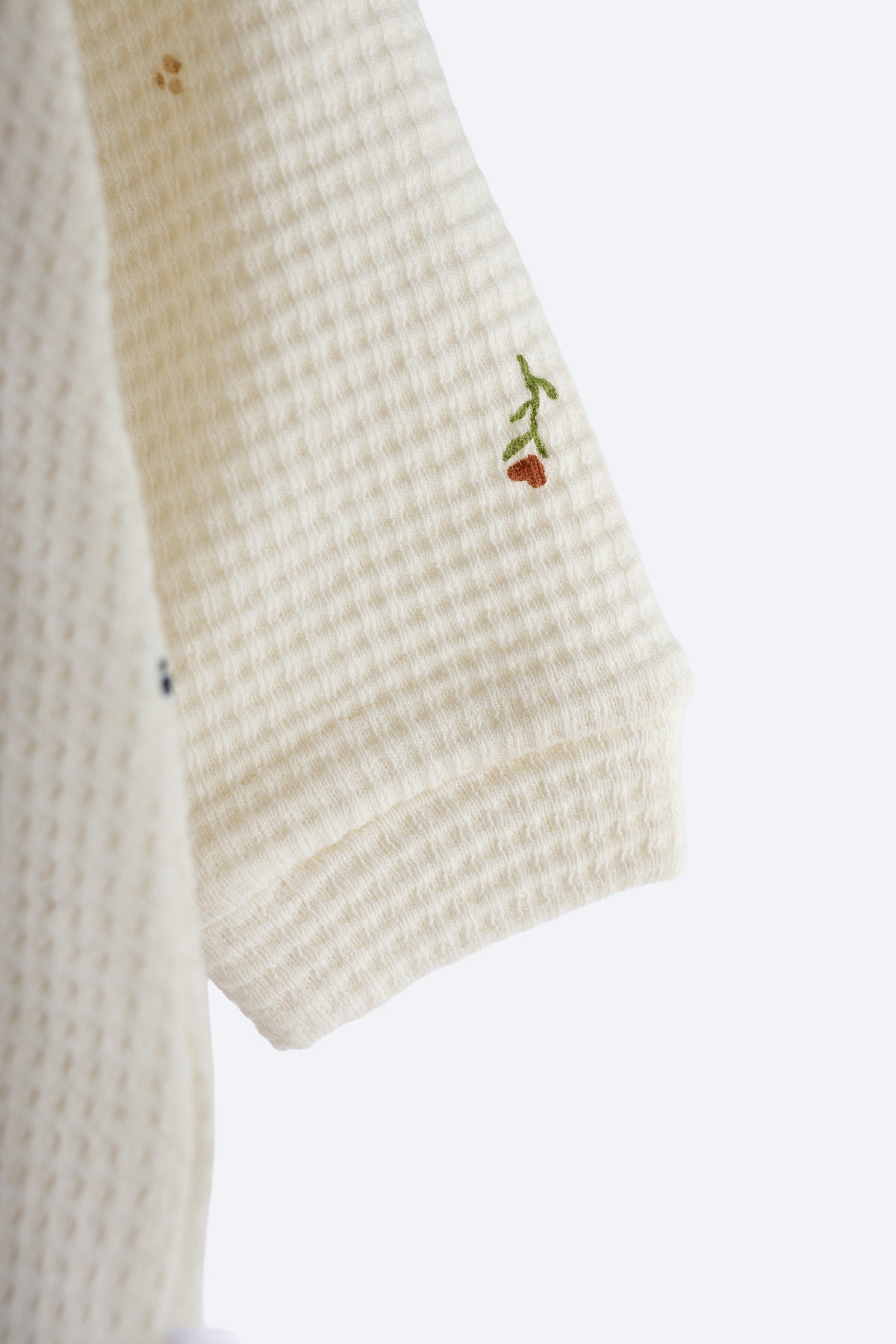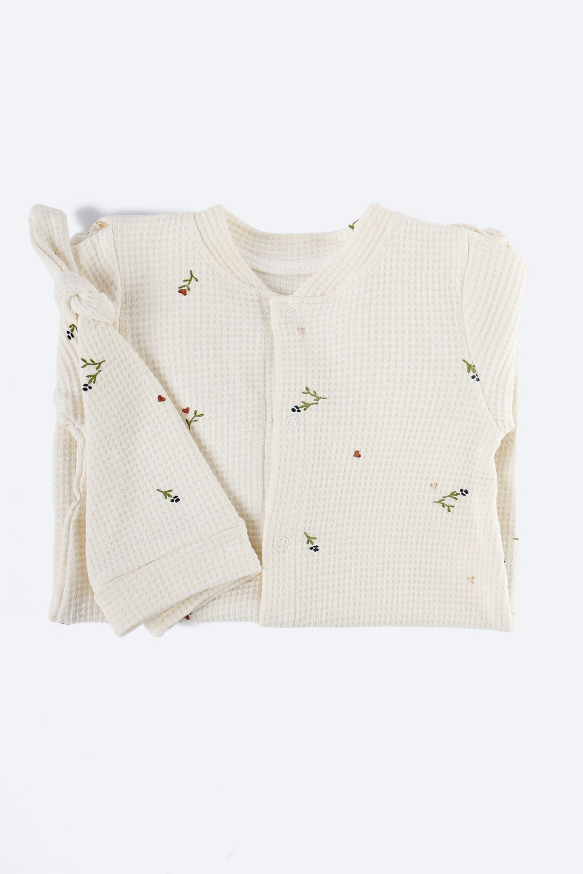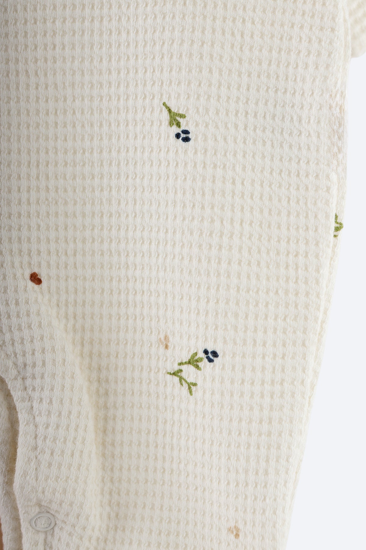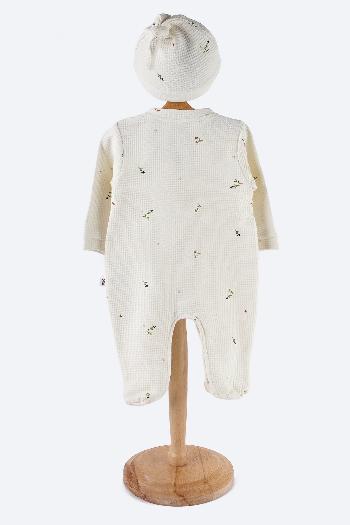 Minik çiçek desenli tulum. Waffle kumaştan % 100 pamuk.