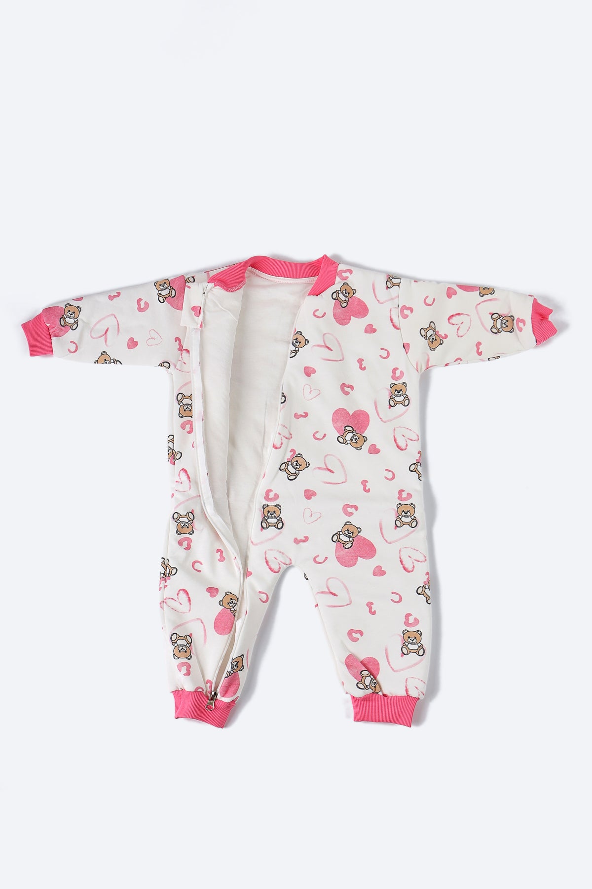 Pembe Kalp ve Ayıcık Desenli Uyku Tulumu
