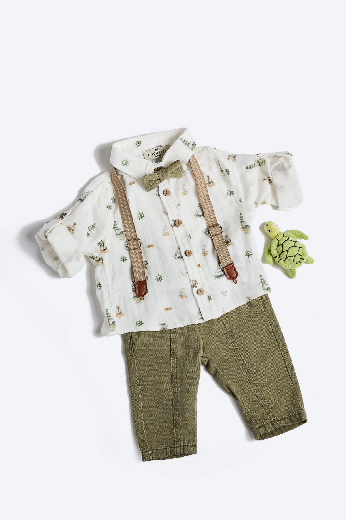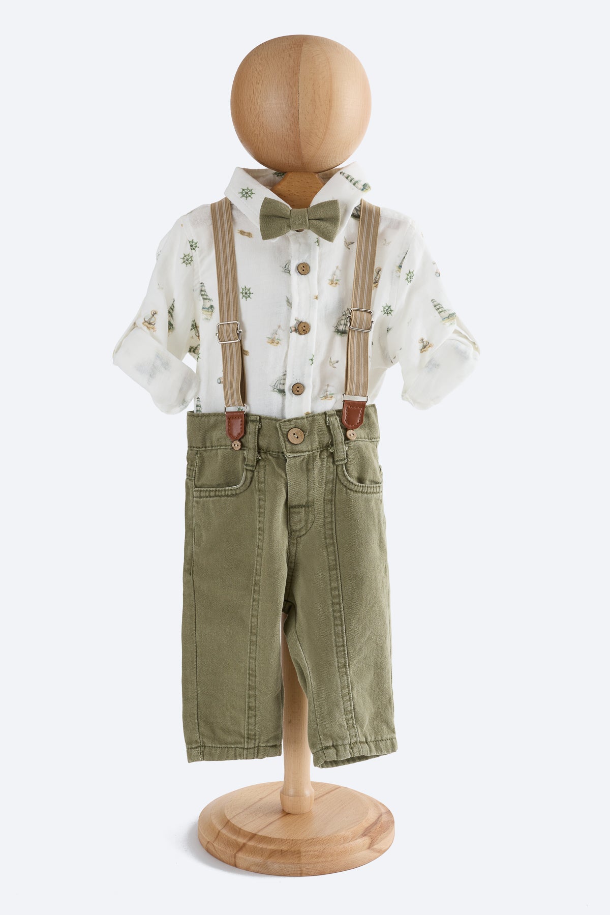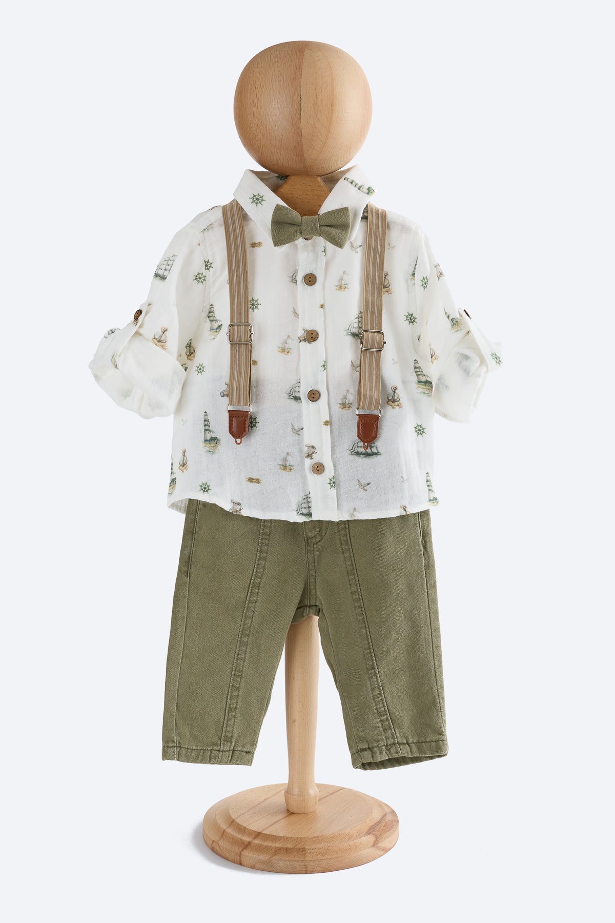 Yeşil Yelkenli Desenli 4'lü Salopet Takım